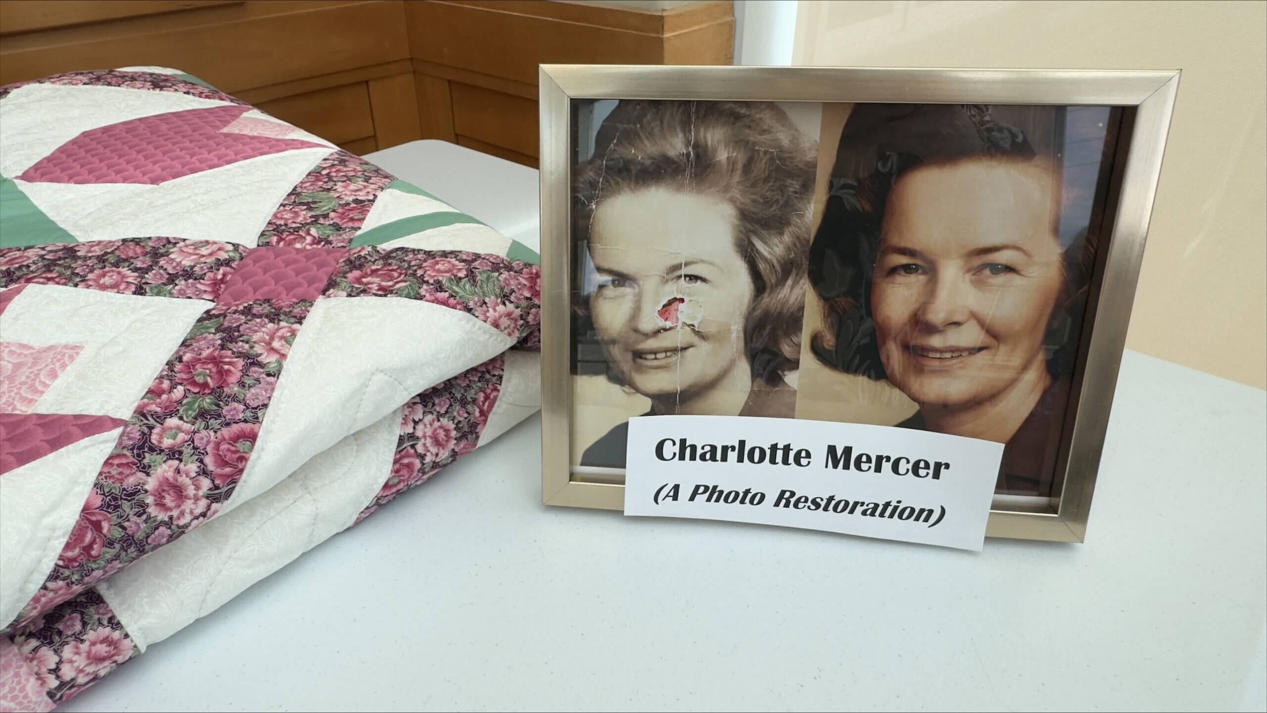 Wellness Coach Sol Matalam sat with resident Charlotte Mercer, who shared an old, worn photo of herself from years past. The image had been damaged over time, and Charlotte expressed sadness that her face was no longer visible, like a precious part of her story had faded away.