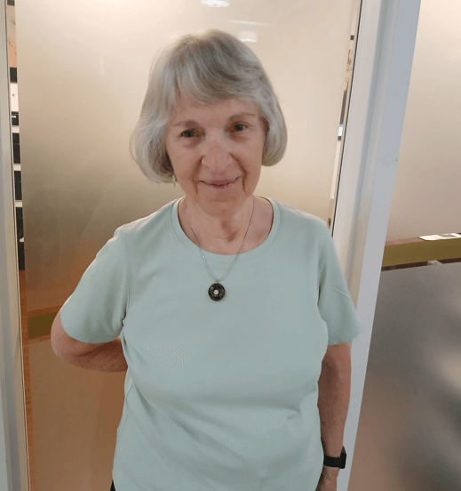 Her days follow a comforting routine: a daily walk she never misses, followed by a cozy spot in the common room where she catches up with neighbours. On days when the weather is too hot or cold, she stays active on the treadmill. She also eagerly joins every outing on the new Parkland bus, embracing life with a positive spirit despite her vision loss.