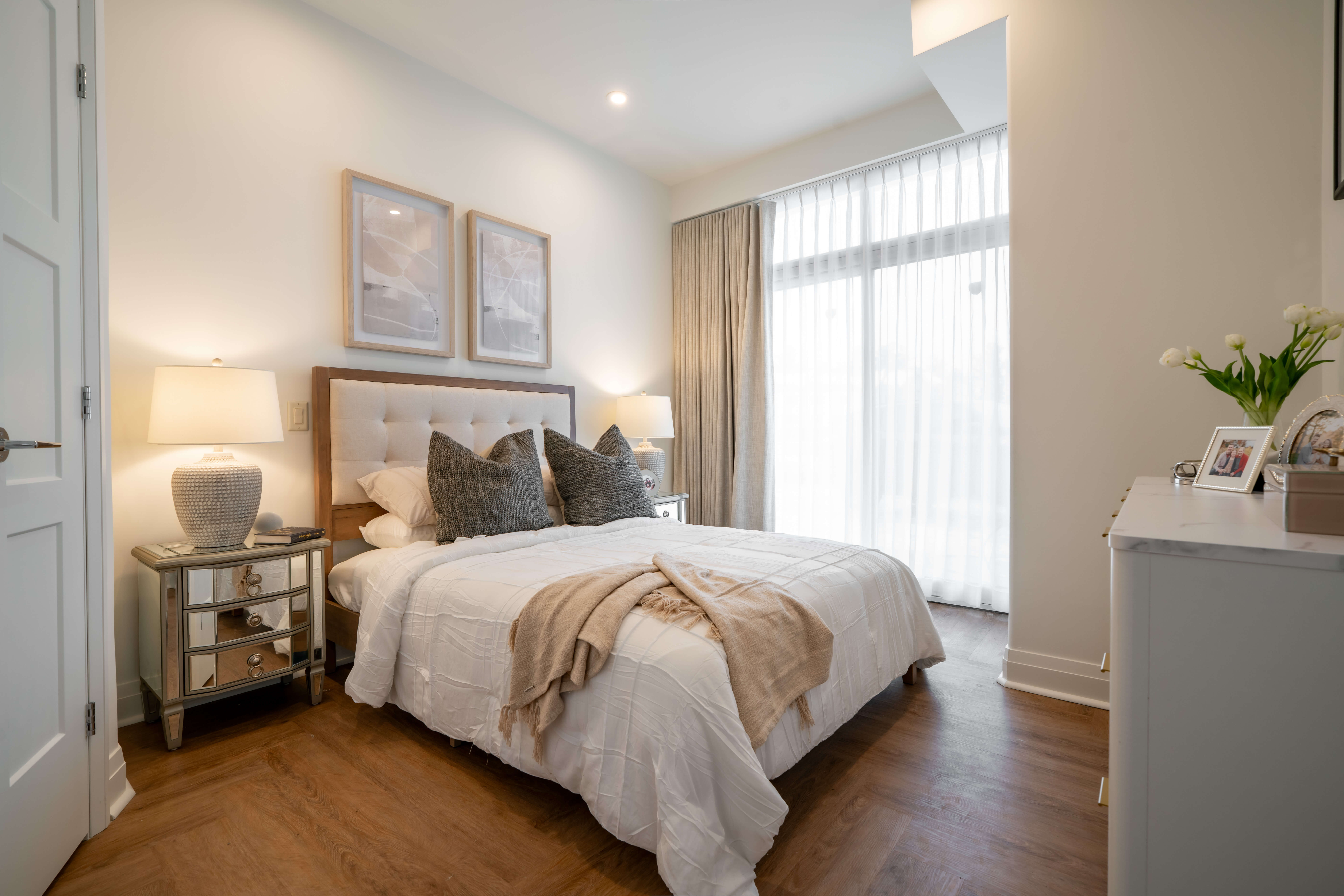 Spacious bedroom with large windows